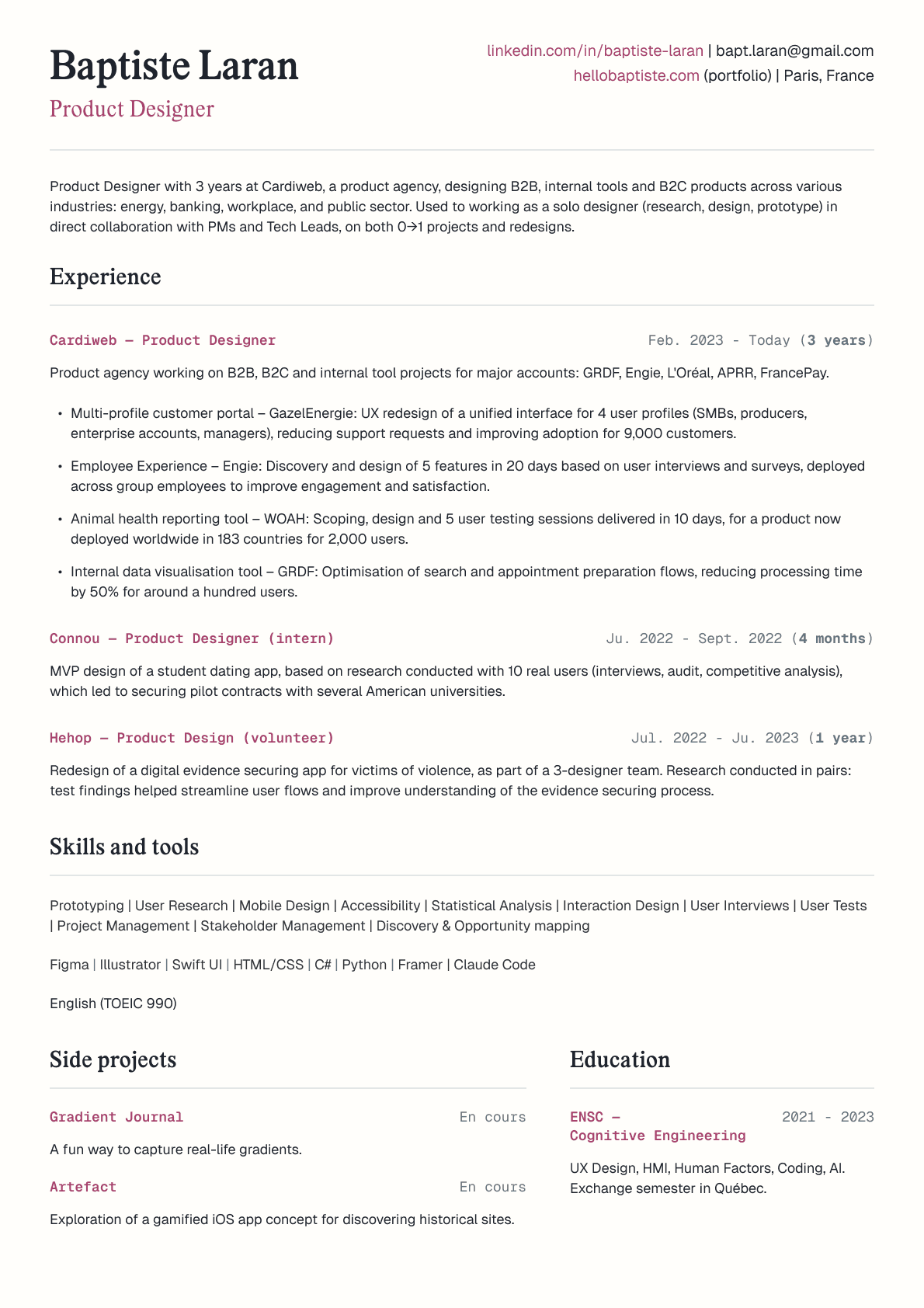 I come from a background in tech and cognitive sciences. I’ve worked as a designer in both agencies and as a freelancer, collaborating with a wide range of clients across different industries and app types. This diversity has made me adaptable and curious, able to quickly dive into new challenges and integrate seamlessly into a team.